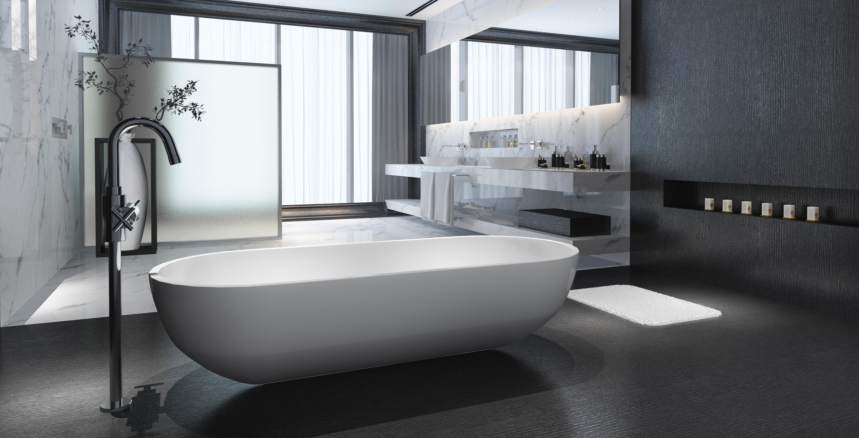 A definitive exploration of duality, where the purity of a freestanding silhouette is anchored against a backdrop of abyssal black. Veined marble and monolithic forms converge to create a sensory ritual, redefining the bath as a space of architectural contemplation.